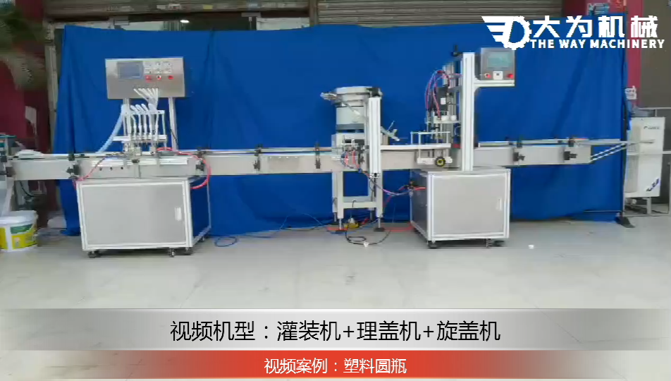 直流式液體灌裝機+理蓋機+旋蓋機(灌裝線)